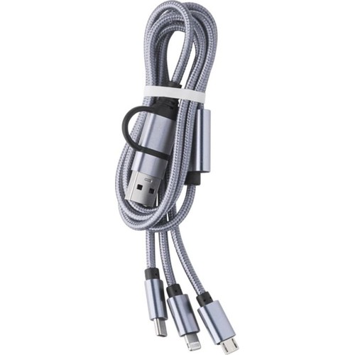 Cabo de carregamento em nylon. USB e USB Type-C. Colors : azul-cobalto Materials : Alumínio/Cobre/Metal/PVC/Estanho Certificates : EMC (nr 23), D.o.C EMC/CE (nr 42), D.o.c. EMC/UKCA (nr 228), PAHs (nr 4), RoHS (nr 5), AZO Dyes/Amines (nr 18), Formaldehyde (nr 30), SCCP (nr 169).