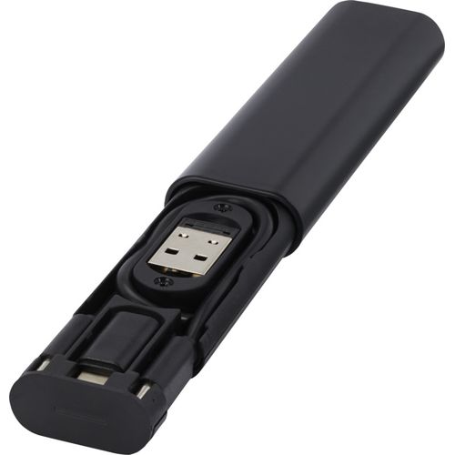 Cabo modular de transferência de dados e carregamento feito de plástico reciclado, entregue numa elegante caixa de armazenamento. O cabo oferece várias soluções de carregamento: Entrada Tipo C e USB-A e saída Tipo C/iOS/micro USB. Graças a todos estes adaptadores e conectores, este cabo permite carregar a maioria dos smartphones, câmaras, powerbanks, auriculares, etc. O cabo tem uma potência de saída máxima de 2 A. Possui um pino de ejeção que é útil sempre que você precisar de retirar o cartão SIM do seu telemóvel. A caixa de armazenamento também tem espaço para armazenar um cartão de memória micro SD e um cartão nano SIM, tornando-o o acessório de viagem perfeito. Comprimento do cabo: 28 cm. Fornecido num envelope de papel kraft 100 % reciclado.Plástico ABS reciclado Green Points Total :43 – CO2 foot print : 2,52Impressão digital – frontal – max color : full colour – 95 x 13 mm.