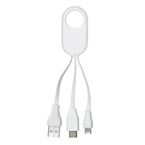 Conjunto de cabos de carregamento com três cavilhas. Cada cabo é de aproximadamente 5,5 cm de comprimento é conectado em suporte oval. Colors : preto Materials : ABS/Plástico/PVC Certificates : PAHs (nr 4), RoHS (nr 5), EMC (nr 23), D.o.C EMC/CE (nr 42), BSCI (nr 195).