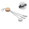 Porta-chaves em bambu com cabo de carregamento 4 em 1 de 60 W. Entrada: 2 em 1 Tipo C e Tipo A. Saída: Carregamento de relógio (Samsung® e Apple®), tipo C e micro-B (2 em 1 pino) Dimensions : 4,4X1,3X26,8 CM