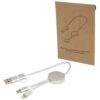 O cabo de sincronização de dados e carregamento rápido de 27 W “Alasia” é feito de alumínio reciclado e plástico reciclado elegantes e duráveis. O cabo possui um conector de entrada USB-A e Tipo C combinado com um conector de saída combinado Tipo C, Micro USB e Lightning/Micro USB. USB-A para USB-C fornece uma potência máxima de saída de 27 W, e todas as outras opções de conexão uma máxima de 15 W. Compatível com CarPlay e Android Auto. Esteja em casa, no escritório ou no trânsito, o cabo “Alasia” oferece desempenho e estilo num pacote compacto. Comprimento do cabo: 30 cm. Materials : Alumínio reciclado Certificates :FSC®, BSCI Battery included :No Default print option : Gravação laser – atrás – max color : 1 – Ø 30 mm