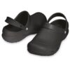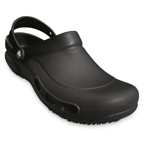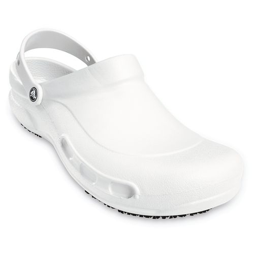 Cumpre as normas da UE em matéria de calçado de trabalho. Suporte generoso e espaçoso. Tratamento fácil. Socas confortáveis, destinados aos profissionais da restauração, da hotelaria e da saúde. Com o seu design antiderrapante e a protecção adicional ao nível dos dedos dos pés, as socas Crocs™ Bistro oferecem tudo o que os seus pés necessitam no local de trabalho! Este modelo com sola antiderrapante Crocs Lock™ é perfeitamente ajustado em resina Croslite™ para um conforto, uma leveza e uma durabilidade perfeitas. O conforto é reforçado através da palmilha que beneficia de uma forma específica e de uma presilha no calcanhar Croslite™ para um bom ajuste ao pé. Um design fechado à frente e uma zona do metatarso mais espessa protegem a parte superior do pé do derrame de líquidos. Limpeza fácil com água e sabão, secagem rápida. Certificação CE e testes efectuados de acordo com a norma ASTM F2913-11. Em conformidade com a norma EN ISO 20347:2012 OB SRC.