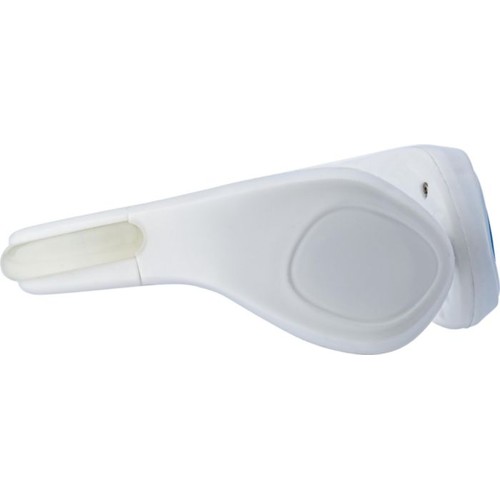 Bracelete para o tornozelo em ABS e silicone com uma luz LED vermelha e duas funções de intermitente. Tem um botão de encendido/apagado. Pilhas incluidas. Colors : white/red Materials : Ferro/PP/Silicone/LED/TPU Battery : 2, Cell-CR2016 Certificates : EMC (nr 23), D.o.C EMC/CE (nr 42), PAHs (nr 4), RoHS (nr 5), MSDS (nr 9), EN 62471:2008 (LVD) (nr 48), Safety Data Sheet (SDS) (nr 27), UN38.3 (nr 137).