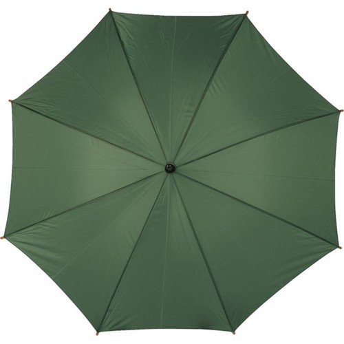 Guarda-chuva automático com 8 painéis de nylon 190T, punho curvo e cabo de madeira, varetas de metal e fecho de velcro. Colors : verde claro Materials : Metal/Poliéster 190T/Multiplex Certificates : Cadmium (nr 2), PAHs (nr 4), Phthalates (nr 13), AZO Dyes/Amines (nr 18), PCP (nr 39).