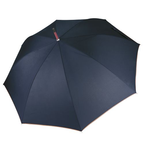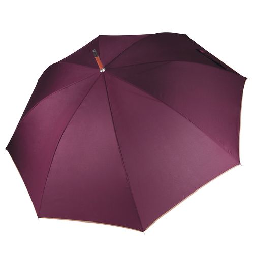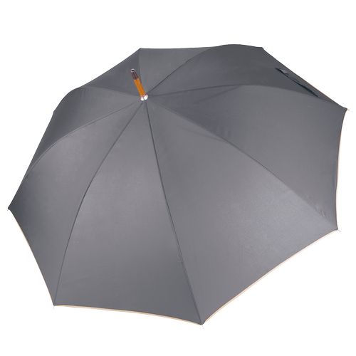 Clássico e elegante. Bonita pega curva em madeira. Abertura automática, fácil e rápida. Chapéu-de-chuva clássico com 23″ (58,5 cm), abertura automática, tecido 100% poliéster pongee, cabo de madeira, varetas em metal, pega curva de madeira, pontinhas metálicas.