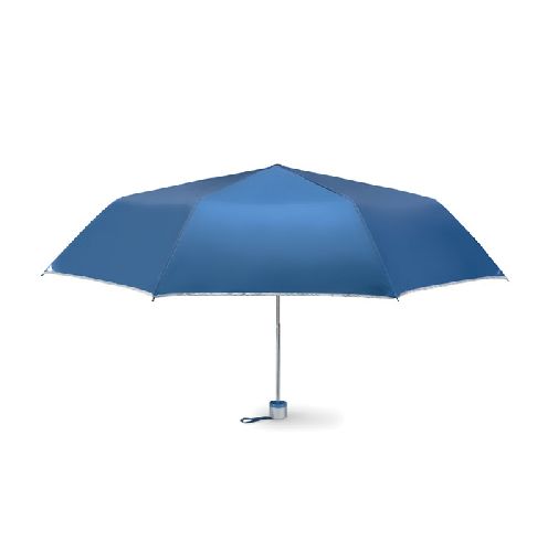 Chapéu de chuva dobrável em 3 com forro prateado. Bolsa a conjunto. 8 gomos, 190T poliéster.
