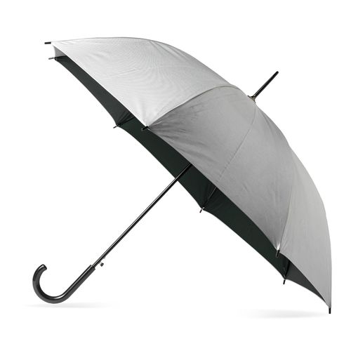 Guarda-chuva automático, em P-190T prateado, cabo em plástico. Com uma combinação de cores contrastante, em que o prateado é sempre o elemento comum, este guarda-chuva é uma ótima opção para gravação. Com pega em “J” e abertura automática.