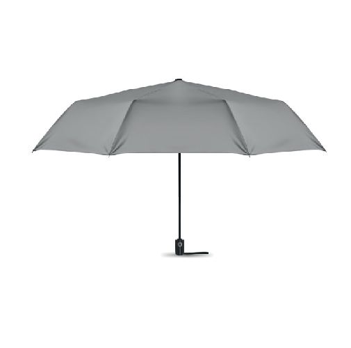 Guarda-chuva de 27” de 3 dobras auto aberto/fechado à prova de vento. Feito em 190T pongee e veio em aço chapeado a preto. Varetas em fibra de vidro. Cabo PP preto com botão. Com bolsa a condizer.