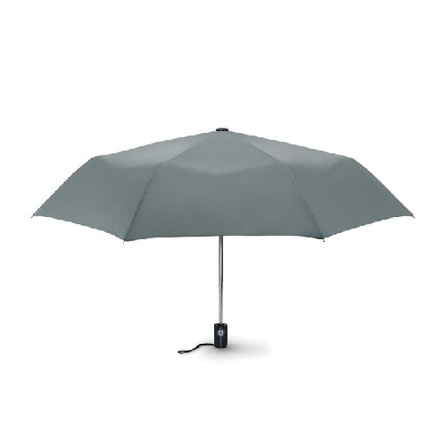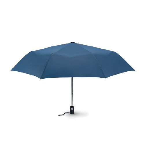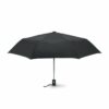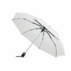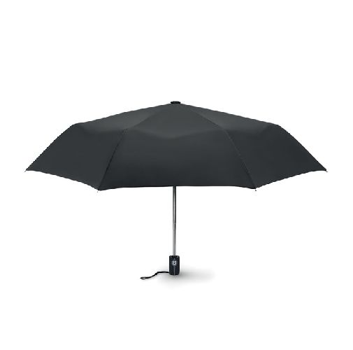 Guarda-chuva Luxe de 21” 3 dobras para tempestade automático em pongee 190T com eixo de aço zincado, costelas preto com 2 secções de fibra de vidro e pontas de metal cromado, punho de borracha preto com doming. Inclui bolsa combinando. Encerramento Auto.