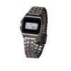 Relógio com um sofisticado acabamento metálico. Com display retroiluminado por LED, garantindo uma exibição clara da hora, mesmo em condições de pouca luz. Oferece uma combinação de funções práticas, incluindo hora, calendário, cronômetro e alarme, para uma gestão eficaz do tempo.Além disso, é resistente a respingos, garantindo durabilidade e confiabilidade no uso diário. Com tecnologia moderna, é a escolha ideal para quem procura um acessório distinto e funcional. Pilha Botão Incluída Composition : Metal.