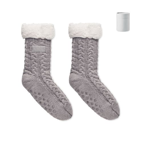 Par de meias-calças de malha de cabo com pinças antiderrapantes no fundo em fio acrílico e forro de sherpa de 240 gr/m². Apresentado em caixa de oferta. Tamanho M= 36-39.