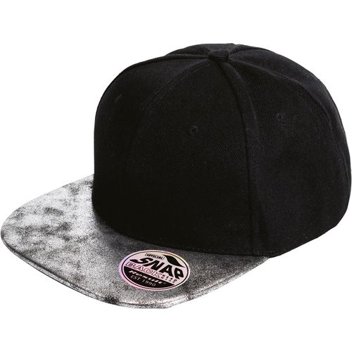 Material resistente e duradouro. Ideal para impressão e personalização. Etiqueta amovível, fácil de voltar a colocar. 100% sarja acrílica. Boné Snapback 6 painéis. Viseira em contraste, pala em PU reciclado com efeito nacarado. Ilhós bordados. Painéis frontais reforçados. Fivela de ajuste Snapback. Etiqueta amovível. Compatível com bordado ou transfer.