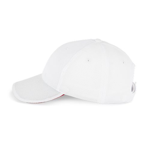 Ilhós de ventilação e banda interior em esponja para um conforto excelente. Poliéster piqué e sandwich em contraste para permitir a diferenciação. Fecho regulável na parte traseira com fita aderente, prático e rápido. 100% poliéster piqué. 6 painéis. Ilhós para ventilação. Sandwich em contraste. Banda interior em malha Terry para maior conforto. Ajuste em velcro.