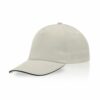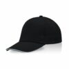 Boné para adulto, pala sandwich, de algodão penteado.Este boné de cinco painéis conta com um fecho de velcro ajustável e um detalhe contrastante na pala. Painel frontal ideal para gravação.