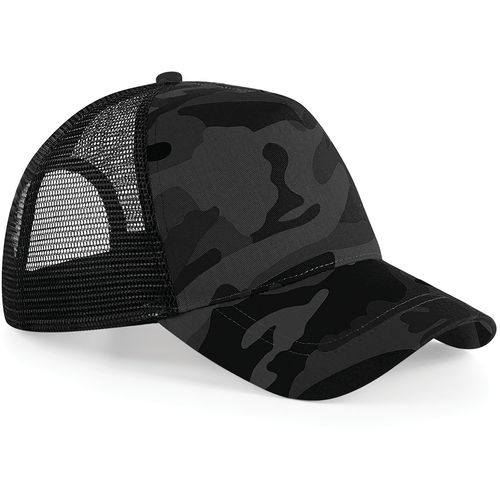 Modelo ajustável. Malha de rede respirável. Etiqueta amovível, fácil de voltar a colocar. Painel frontal e pala em 100% algodão. Painéis traseiros em rede 100% poliéster. Etiqueta amovível TearAway. 5 painéis. Pala curva. Detalhes em camuflado. Fivela estilo retro ajustável.