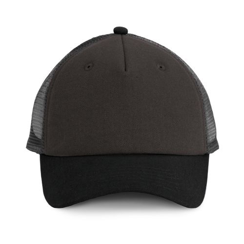 Painéis frontais e pala em algodão canvas extremamente resistente. Fivela de ajuste em plástico, simples e prática. 98% algodão/2% poliéster. Boné estilo Trucker com 5 painéis. Painéis frontais e pala em algodão canvas e rede em poliéster. Fivela de ajuste em plástico.