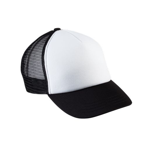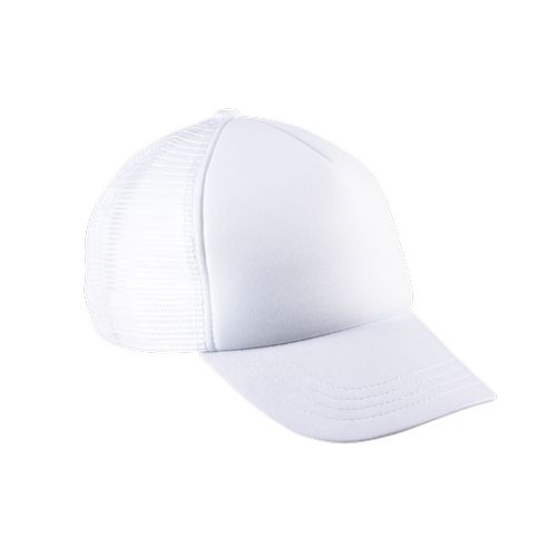 Painel frontal que facilita a personalização. Poliéster resistente e rede na parte traseira para facilitar a ventilação. Fecho traseiro com fivela de plástico, simples e prático. 100% poliéster com malha na zona traseira em poliéster. 5 painéis. Personalização fácil no painel frontal. Fivela de ajuste em plástico. Diâmetro: 53 cm.