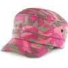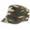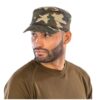 Tecido flexível, encorpado e resistente. Suave ao toque e respirável, confortável. Tamanho regulável e ajustável. 100% sarja de algodão. Estilo militar com motivo de camuflado. Pesponto quádruplo na pala curva, curta e arredondada. Ilhós com pesponto. Ajuste com fivela metálica na parte traseira. Compatível com bordado.