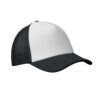 Boné de 5 paineis ( trucker ) em poliéster 140-150 gr/m2 com ajuste de fecho de pressão de plástico. Painel frontal branco e display colorido em Jersey poliéster com apoio de espuma. Outros painéis em malha colorido. Tamanho 7 1/4. Dimensions : 22X17X11.5 CM
