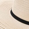 Look elegante. Confortável (banda para absorver a transpiração). Etiqueta amovível, fácil de voltar a colocar. 100% palha de papel. Fita para absorção da transpiração 100% poliéster. Etiqueta TearAway. Copa redonda. Aba larga.