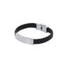Bracciale in pelle sintetica nera adornato con placca realizzata in acciaio inox lucidato dal design piatto. Presenta una chiusura di sicurezza originale. Composition : Pele Sintética.