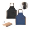 Avental em 100% algodão canvas (300 g/m²) com detalhes em metal. Com 3 bolsos multifuncionais e uma tira lateral (para suporte de um pano de cozinha). Tira do pescoço facilmente ajustável. Fornecido com caixa de oferta em kraft feita de material certificado FSC™ e outros materiais controlados. 680 x 900 mmMaterials : AlgodãoCertificates : REACHPacking : Polybag – Default customisation : Avental – Frente (Serigrafia têxtil – 200 x 200).