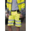 Calças extensíveis, robustas e resistentes. Bandas reflectoras. Práticas com muitos bolsos. 80% poliéster, 20% algodão. Calções robustos e resistentes com tecido extensível mecânico. Cintura em parte elástica com presilhas e braguilha com fecho YKK e um botão. Bolsos laterais com acesso fácil, um bolso interior com fecho extra do lado esquerdo, bolso cargo lateral e bolsos traseiros para a fita métrica. Presilha porta-martelo. Painéis em contraste pretos, bandas reflectoras e costuras reforçadas nos pontos de fricção. Corte largo. 25 lavagens no máximo. EN ISO 20471:2013 + A1:2016 Classe 1 RIS-3279-TOM Número 2:2019 Classe 1 (cor-de-laranja apenas).
