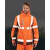 Capuz removível com cordão. Punhos reguláveis com fecho de velcro. Fecho de correr resistente com gola alta. 100% ¨Poliuretano (exterior) e 100% Poliéster reciclado (costas). Este casaco de segurança impermeável de estilo escandinavo, com capuz removível e costuras soldadas, oferece uma proteção ótima contra as intempéries graças ao seu tecido espesso e macio. Dotado de faixas refletoras estampadas, bolsos com fecho e uma aba de proteção contra tempestades com botões de pressão. Fabricado a partir de materiais reciclados, combina conforto, durabilidade e respeito pelo ambiente. Em conformidade com as normas: EN ISO 20471:2013+A1:2016 Classe 3 – RIS-3279-TOM: ISSUE 2:2019 Classe 3 – EN343 3:1