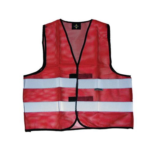 Colete em malha de rede, de alta-visibilidade, com 2 barras refletoras. Super respirável. Ideal para locais muito quentes. Ajustável com dois fechos frontais, de velcro. 100% Poliéster