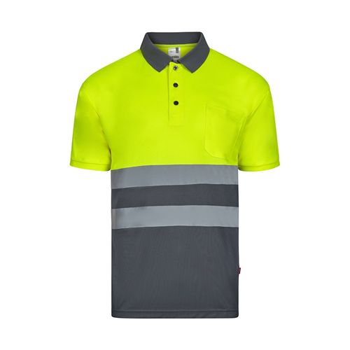 Polo bird-eye (140g/m²) de manga curta, em poliéster (100%). Botões e gola canelada em cor contraste. Faixas refletoras no peito e um bolso no peito. Tamanho: S, M, L, XL, 2XL, 3XL Properties : Elementos refletores Materials : Poliéster Packing : Polybag, Panfleto – Repacking : Polybag, Panfleto Default customisation : Camisola – Bolso superior (Transfer – 60 x 60)