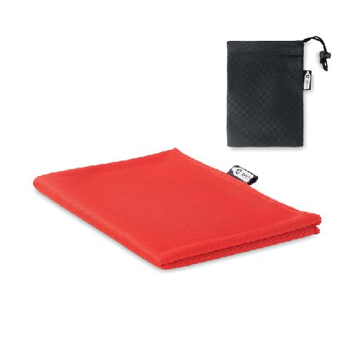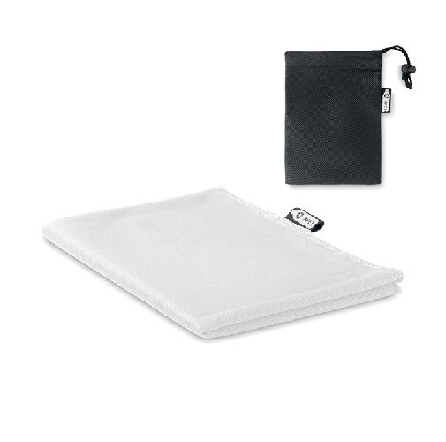 Toalha de desporto RPET, de alta absorção de água incluindo saco de malha não tecida em RPET.