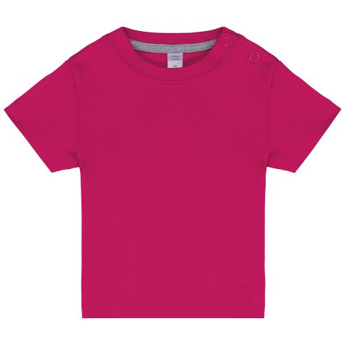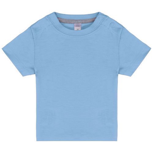 T-shirt para bebé essencial, lavada com banho de enzimas. Suave ao toque e excelente capacidade de impressão. Confeção em 100% algodão. 100% algodão lavado com enzimas para um toque suave. Decote redondo com 2 molas no ombro. Tapa-costuras em contraste. Acabamento com costura dupla.