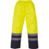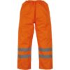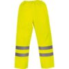 2 faixas retrorrefletoras largas na base das pernas. Cintura elástica. Molas de pressão na base das pernas para ajuste. 100% poliéster. Tecido Oxford com revestimento PU. Impermeável. Duas bandas retrorreflectoras com 5 cm de largura nos tornozelos. Cintura elástica. Molas de pressão nos tornozelos para ajuste. Costuras cosidas e seladas. Em conformidade com as normas EN ISO20471:2013 Classe 1 e EN343 relativas à protecção contra mau tempo: apenas Hi-Vis Yellow, Hi-Vis Yellow/Navy, Hi Vis Orange e Hi Vis Orange/Navy. Hi Vis Orange e Hi Vis Orange/Navy também em conformidade com a norma GO/RT 3279.