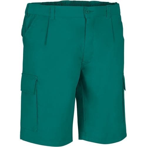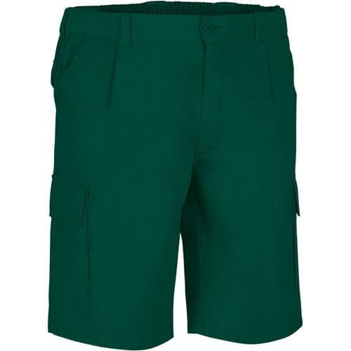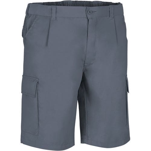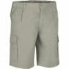 calções de trabalho de multibolsos. confeccionados em tecido de sarja mescla de algodão com tecido de poliéster resistente e durável. cintura com elástico na metade traseira e pinças dianteiros para melhor ajuste e conforto. dois bolsos inclinados nas ancas, dois bolsos laterais com fecho de velcro e um bolso traseiro direito para manter tudo acessível e disponível. costuras principais duplas e pontos de tracção extra, reforçadas com passadores de segurança para maior durabilidade e resistência. métodos adequados de marcação: estampagem, transfer, vinil, bordado, etc. ideal para o Verão e ambientes de trabalho quentes.Composition : 65% poliéster 35% algodão.