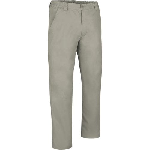 calças de trabalho de corte regular. confeccionado em tecido de grosso de sarja,mescla de algodão com poliéster para maior durabilidade e resistência. fecho de botão com fecho de correr oculto por baixo da aba, cintura com pasadores de cinto, costas elásticas e cintura elástica lateral para melhor ajuste e conforto. dois bolsos de anca inclinados e um bolso traseiro direito com fecho de botão, para manter tudo acessível e disponível. costuras principais com costura dupla e pontos de tracção extra reforçados com laços de segurança para maior durabilidade e segurança. métodos adequados de marcação: estampagem, bordado, transfer, vinil, etc. ideal para uso laboral.Composition : 65% poliéster 35% algodão.