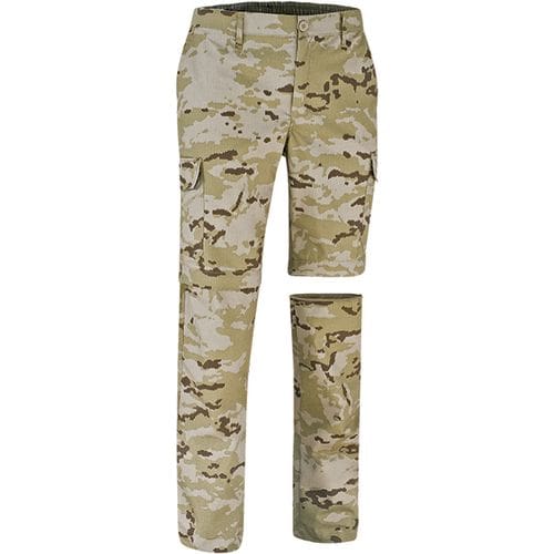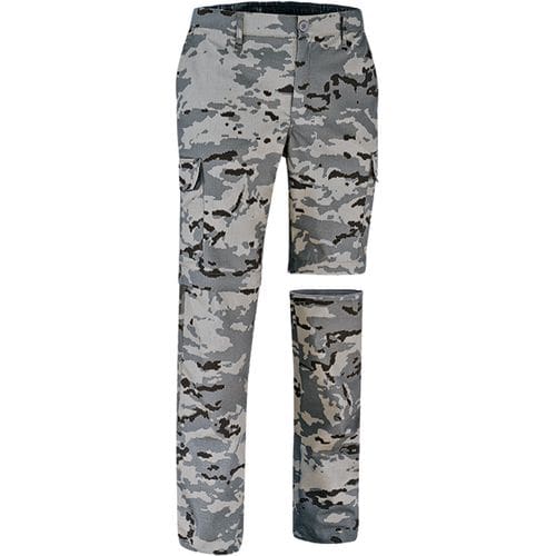 Calças de multibolsos destacáveis com desenho de camuflagem pixelada em cores combinadas dentro da mesma gama cromática. confeccionado em tecido de ripstop para resistência e durabilidade. pernas destacáveis com fechos de correr que as transformam em calções quando está mais quente. cintura com metade elástica atrás para um melhor ajuste e maior conforto. seis bolsos para ter tudo acessível: dois nas ancas, dois bolsos laterais com fecho de aba e de velcro e dois bolsos de aba atrás também com fecho de aba de velcro. métodos adequados de marcação: estampagem, transfer, vinil, bordado, patchs, etc. ideal para desportos de aventura, treino militar, treino de airsoft e actividades ao ar livre.Composition : 65% poliéster 35% algodão.