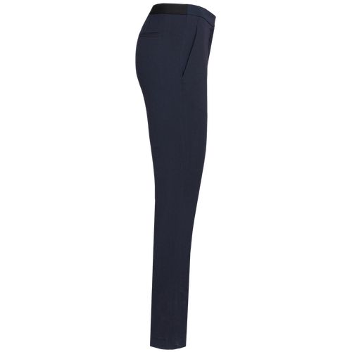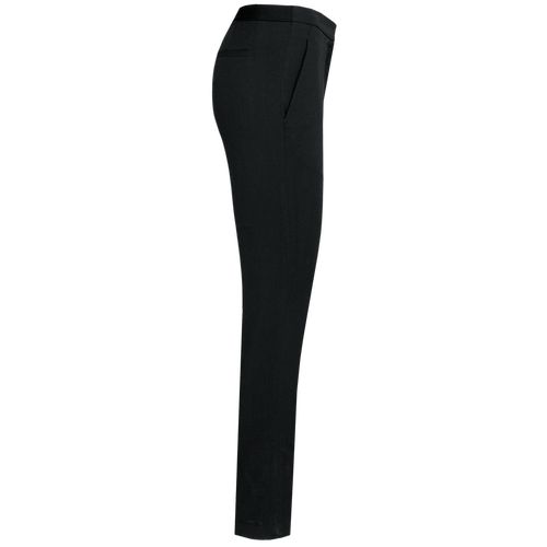Corte justo fashion e impecável, com acabamentos discretos e refinados. Peça essencial e elegante do vestuário corporate. Conjunto de fato a complementar com o casaco do fato K6131. 64% poliéster/34% viscose/2% elastano. Calças com corte justo. 2 bolsos italianos à frente e 2 bolsos traseiros com detalhes. Braguilha com fecho, botão e pala. Cintura com elástico na parte traseira para um conforto excelente. Comprimento entrepernas: 78 cm. Base das calças com bainha invisível.