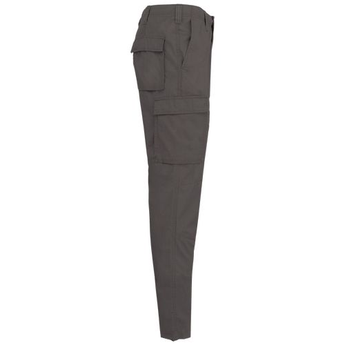 Leve e confortável. Peça essencial do vestuário de workwear. Tecido lavado em popeline de algodão para um aspeto flexível. Prático e muito funcional. 100% algodão popeline. Tecido lavado para ter um toque flexível e confortável. Cordão de ajuste na cintura. Com fecho e molas de pressão. 2 bolsos italianos laterais + 1 bolso para moedas. 2 bolsos traseiros e laterais com pala e mola de pressão. Encaixe nos joelhos.