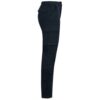 Tecido em sarja que alia conforto e durabilidade. Encorpado e resistente, peça essencial do vestuário de workwear. Prático e muito funcional. 98% algodão/2% elastano. Tecido em sarja com toque de pele de pêssego. Com fecho e botão de metálico. 2 bolsos frontais. 2 bolsos laterais com divisórias com pala. 2 bolsos traseiros com pala.
