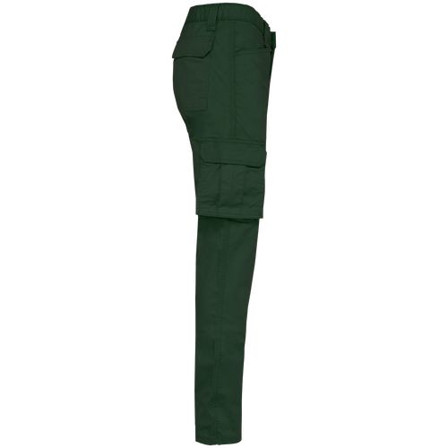 Vários bolsos para arrumação adicional e presilha de aplicação para ferramentas. Tecido em sarja: leveza e resistência aos rasgões. Cintura elástica para maior conforto. 65% algodão biológico/33% poliéster reciclado pré-consumo, 2% elastano. Tecido em sarja. Lavagem a 60 °C. Com fecho e botão metálico oculto. Cintura elástica e presilhas para maior conforto. Bainha entre pernas reforçada por costura tripla. 2 bolsos italianos à frente, um dos quais com 1 bolso para moedas no forro do lado direito. 2 bolsos laterais com fole e 2 bolsos traseiros com pala e fecho com velcro. Presilha para ferramentas no bolso traseiro esquerdo. Presilha interior na cintura. Costura de reforço nos bolsos para maior robustez. Acabamento com costura dupla. Certificações : OCS Blended