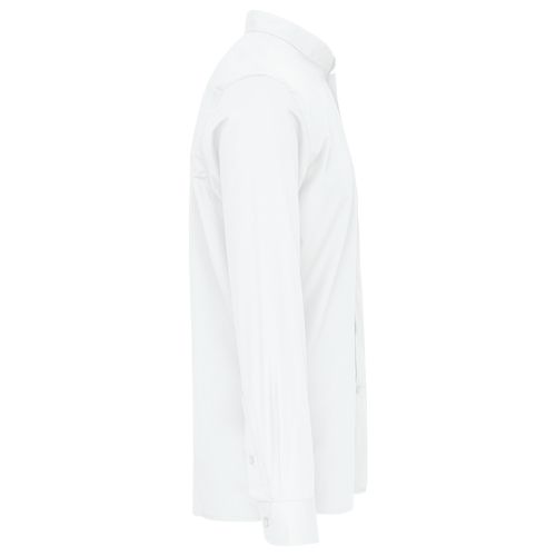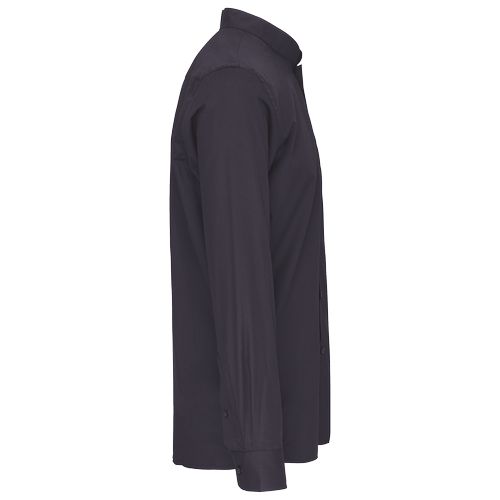 Camisa de profissionais da restauração. Gola mao com um toque chique e moderno. Tratamento Easy Care para um tratamento fácil. 65% Poliéster / 35% Algodão Popeline. Tecido tratamento fácil. Colarinho tipo padre. Botões à cor. Bolso peito esquerdo com cantos arredondados. Punhos ajustáveis. 2 botões extra. Corte justo.