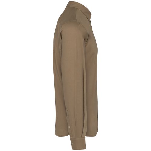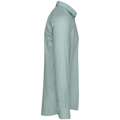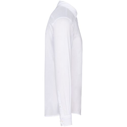 100% algodão biológico IC2 (em conversão)*. Fabricada em Portugal. Corte justo. Popeline de algodão leve. Botões em plástico reciclado. Colarinho com suporte. Encaixe na parte de cima das costas. Carcela traseira com botões tom sobre tom com efeito nacarado. Carcela com botões nos punhos. Costuras laterais e nos punhos com pesponto duplo. Costura simples no cós. Peça lavada após produção: as cores podem variar ligeiramente. Certificações : GOTS em conversão EVE Vegan