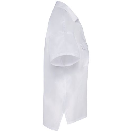 60% liocel TENCEL™ / 40% algodão biológico. Corte oversize. Com banho de enzimas. Botões em plástico reciclado tom sobre tom. Carcela com botões. Camisa decotada. Dois bolsos planos com pala no peito. Encaixe nas costas. Costas mais compridas. Aberturas laterais. Peça lavada após produção: as cores podem variar ligeiramente. Este produto é susceptível de tingir em contacto com superfícies ou peças de roupa claras. Certificações : OCS Blended / Algodão Biológico EVE Vegan