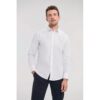 Algodão de popeline: tecido liso e resistente. Tratamento fácil, antirrugas. Malha extensível: confortável e justa. 97% algodão popeline / 3% elastano. Malhas extensíveis para maior conforto e um ajuste perfeito. Tratamento fácil. Camisa com 7 botões à cor da peça. Colarinho elegante semiaberto tipo italiano com um botão pérola Punhos com 2 botões e colarinho com um único botão.