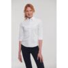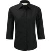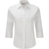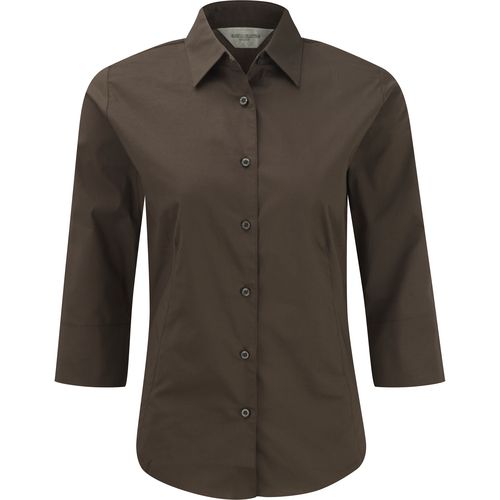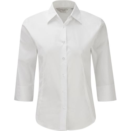 Algodão de popeline: tecido liso e resistente. Tratamento fácil, antirrugas. Malha extensível: confortável e justa. 97% algodão popeline / 3% elastano. Malhas extensíveis para maior conforto e um ajuste perfeito, é necessário um tratamento mínimo. Camisa com 7 botões à cor da peça. Pinças nas costas e à frente (da bainha ao peito) para um corte justo que realça a silhueta da mulher. Colarinho clássico com um único botão. Manga a 3 / 4 com abertura na zona do cotovelo.