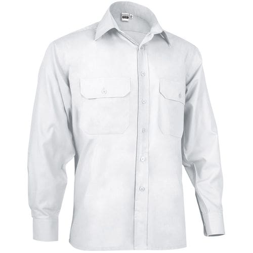 camisa de manga comprida com dois bolsos. confeccionados em tecido de popeline,mescla de algodão com poliéster, leves, resistentes e duráveis. dois bolsos no peito, com fecho de aba e botões tone-on-tone, para manter tudo acessível e realçar a marcação. costuras reforçadas nos lados, ombros, mangas e cavas que aumentam a sua resistência. punhos e fecho frontal com botões tone-on-tone, dois gussets nas costas para conforto. métodos adequados de marcação: estampagem, bordados, transfer, patchs, etc. ideal para trabalho e uso corporativo.Composition : 65% poliéster 35% algodão.