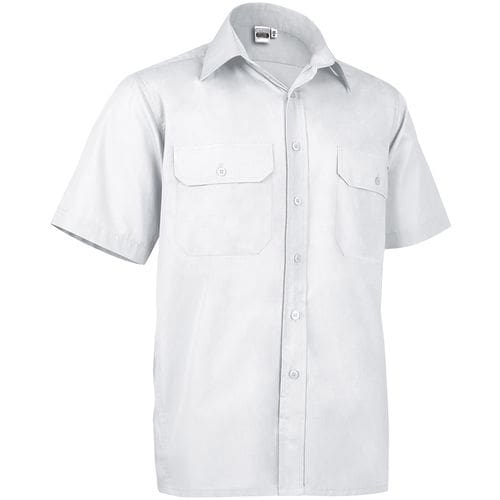 camisa de manga curta com dois bolsos. confeccionados em tecido de popeline,mescla de algodão com poliéster, leves, resistentes e duráveis. dois bolsos no peito, com fecho de aba e botões tone-on-tone, para manter tudo acessível e destacar a marca. costuras reforçadas nos lados, ombros, mangas e cavas que aumentam a sua resistência. fixação frontal com botões tone-on-tone, dois gussets nas costas que proporcionam conforto. métodos adequados de marcação: estampagem, bordados, transfer, patchs, etc. ideal para o trabalho e uso corporativo.Composition : 65% poliéster 35% algodão.