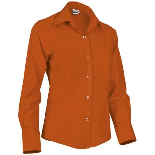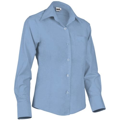 camisa de senhora com mangas compridas e ajuste estreito. confeccionado em tecido oxford com fio tingido,mescla de algodão com poliéster, resistente e durável. bolso esquerdo do peito para manter tudo acessível e destacar a marcação. punhos e fecho frontal, da direita para a esquerda, com botões translúcidos. costuras reforçadas nos lados, ombros, mangas e cavas que aumentam a sua resistência. métodos adequados de marcação: estampagem, bordado, trenfer, patchs, etc. ideal para o trabalho, uso corporativo e casual.Composition : 30% poliéster 70% algodão.