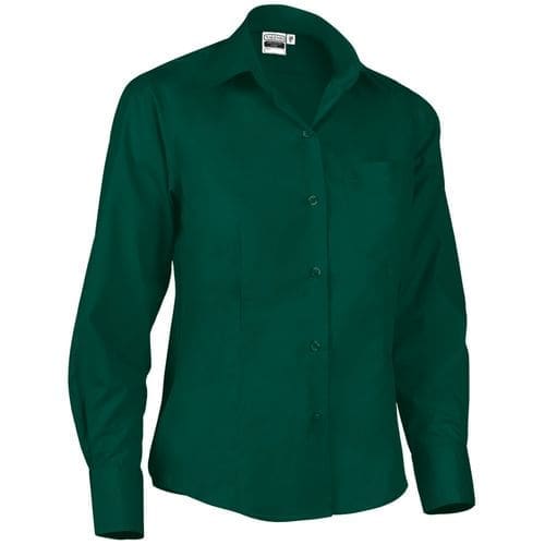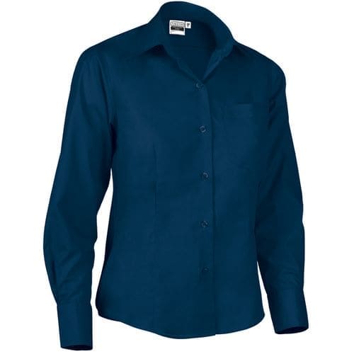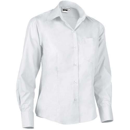 camisa de senhora com mangas compridas e ajuste estreito. confeccionado em tecido de popelina,mescla de algodão com poliéster, leve, resistente e durável. bolso esquerdo do peito para manter tudo acessível e destacar a marcação. punhos e fixação frontal, da direita para a esquerda, com botões tone-on-tone. reforçados nas costuras laterais, ombros, mangas e cavas que aumentam a sua resistência. métodos adequados de marcação: estampagem, bordado, trenfer, patchs, etc. ideal para trabalho e uso corporativo.Composition : 65% poliéster 35% algodão.