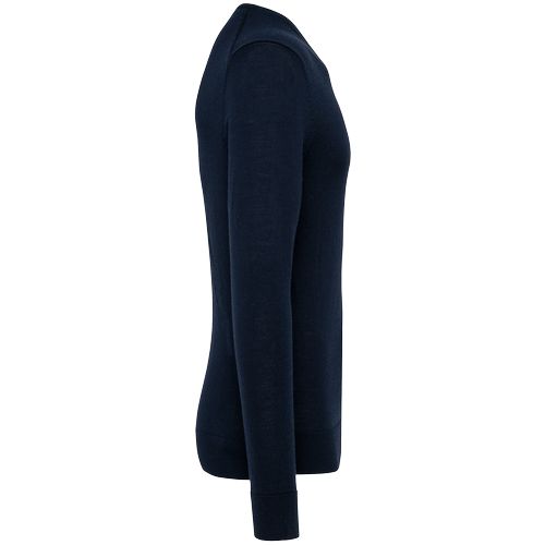 Excelentes propriedades de isolamento. Resultado impecável e toque sedoso, graças à delicadeza da lã merino penteada. Fibras muito suaves, peça agradável de vestir. 100% Lã merino extrafina penteada. Arqueado 14. Muito fashion: tricotada na forma e montada na máquina das malhas. Decote, punhos e bainha em malha rib 1 x 1. Certificações : RWS